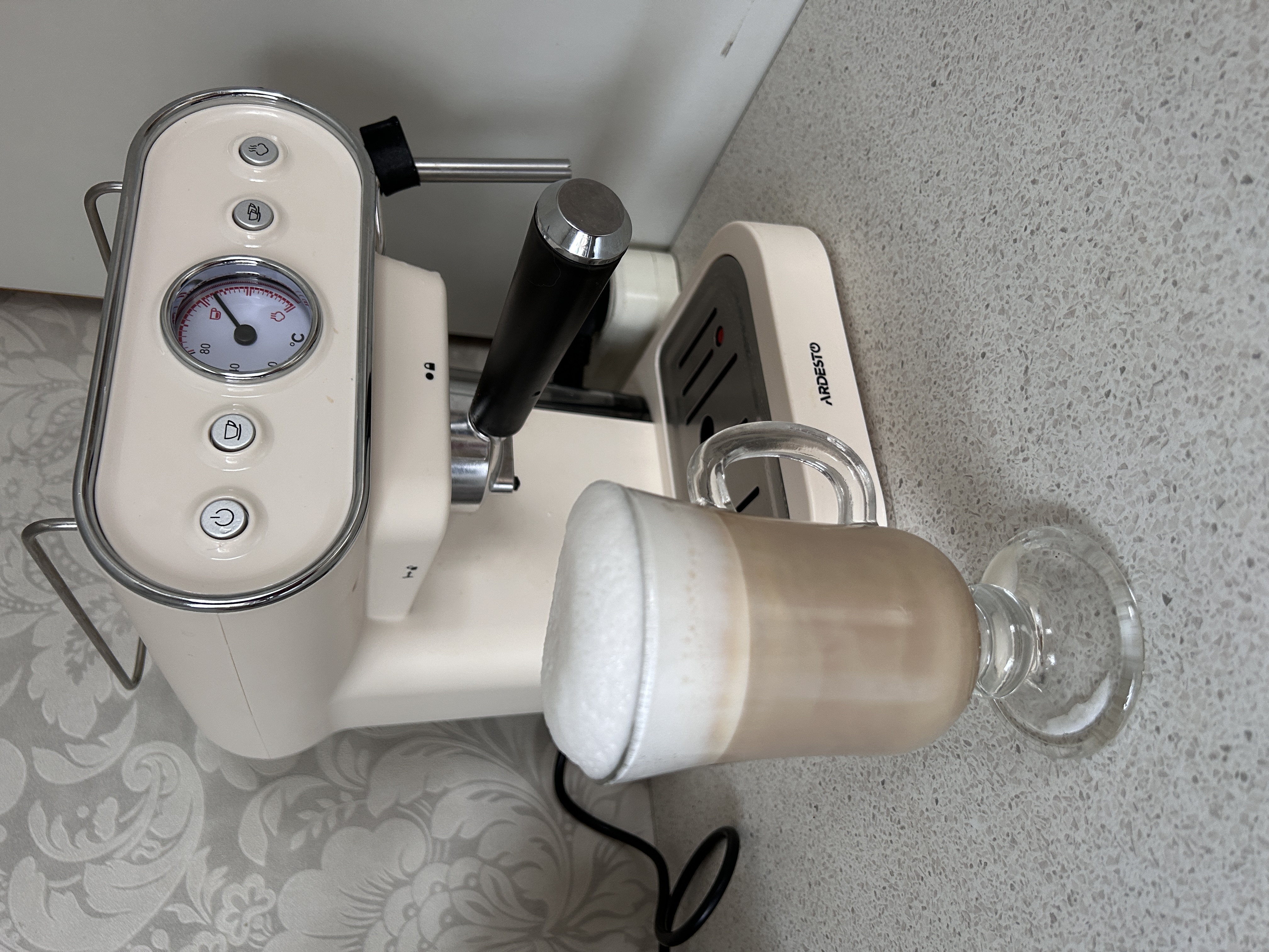 Дуже швидко розібрались з кавоваркою. Кава виходить смачна. Піна збивається швидко. Працює тихо, що було впжливо. Декілька хвилин і чашка запашної кави на столі.