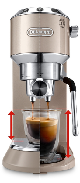 Регулируемый поддон для капель подходит для разных чашек, маленьких и высоких, высотой до 12 см.