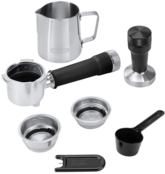 | Комплектация (воз-ны изменения в разных поставках) | Документация, Иголка для чистки, Кофеварка, Мерная ложка, Питчер, Рожок, Темпер, Тестовая полоска для определения жесткости воды, Фильтр - 3 шт. |