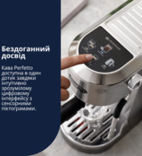 Рожковая кофеварка Delonghi подарит вам идеальный кофейный опыт в комфорте вашего дома. Благодаря цветным сенсорным иконкам на панели управления вы можете легко приготовить любимые напитки - эспрессо, двойной эспрессо или освежающий Cold Brew, который готовится за 5 минут.