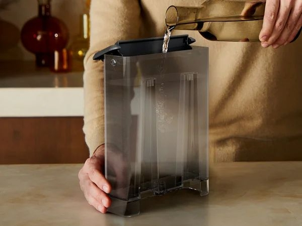 Объем съемного контейнера для воды 2 литра. Этого достаточно, чтобы приготовить различные кофейные напитки для семьи и гостей. Откидная крышка добавляет комфорта и практичности.