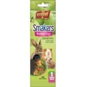 Лакомства Vitapol Smakers для грызунов в виде палочки, состоят из трех слоев, соединенных так, чтобы минимизировать потери корма во время поедания. Они высушиваются, а не запекаются, поэтому сохраняют все витамины и натуральный вкус.