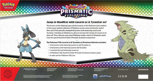 Коллекционная карточная игра Pokemon Scarlet & Violet Prismatic Evolutions. Lucario Ex & Tyranitar Ex Premium Collection