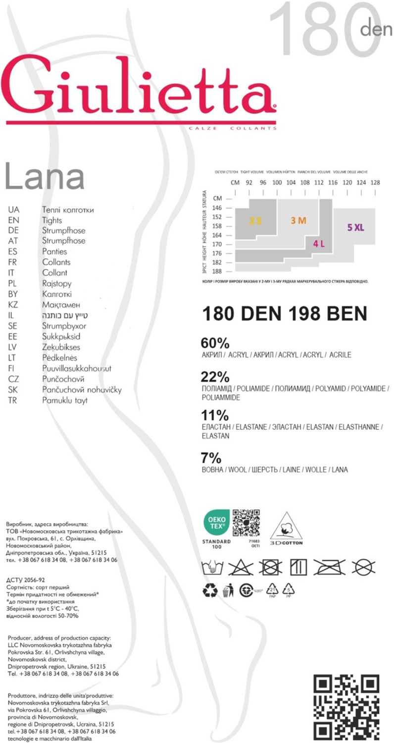 - Колготки Giulietta 7094 Lana 180 Den Den 2p черные