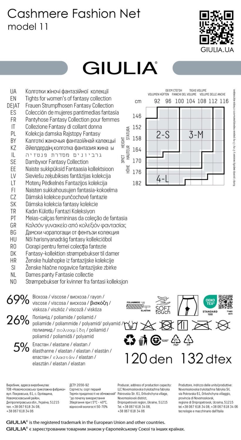 - Теплые колготки из вискозы Giulia 7166 Cashmere Fashion Net 120 Den 2p черные