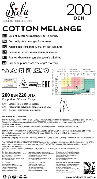 Очень теплые и мягкие женские колготки Siela Cotton Melange из хлопка подходят для холодной погоды и комфортного утепления ног. Плотная структура делает их устойчивыми к ветру и холоду.
