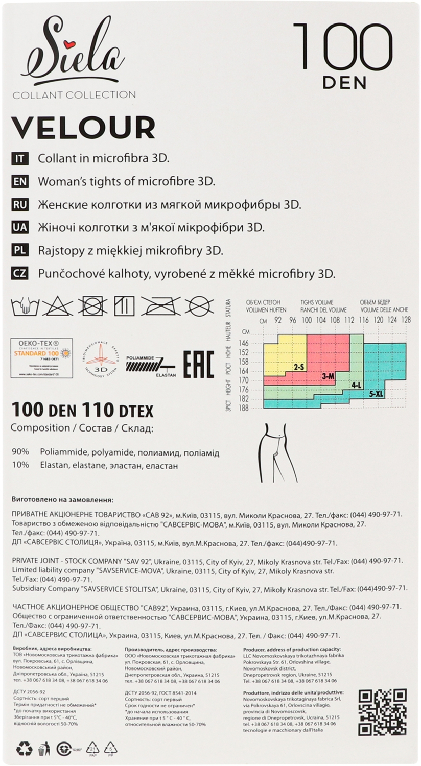 - Колготы женские SIELA Velour 100 Den 2р черные (4823102986623)