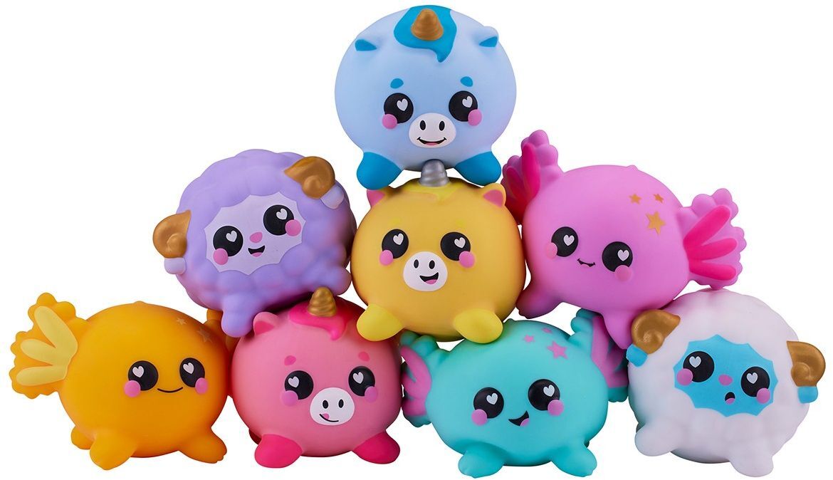 - В ассортименте 8 героев нежных пастельных цветов с интересными историями о каждом. Есть два редких — желтый единорог Фандер и розовый аксолотль Джелли! Возможно, вы найдете их первыми?