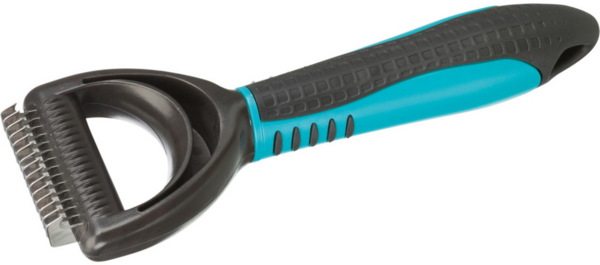 Колтунорез для собак Trixie - это незаменимый инструмент для ухода за шерстью вашего четырехлапого питомца. Имеет удобную пластиковую ручку, с нанесенным на нее специальным противоскользящим резиновым покрытием. Колтунорез отлично выполняет свои функции, удобен в использовании и безопасен для животных.