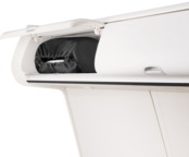 Стояночный тормоз расположен непосредственно на правом заднем колесе. Это устраняет необходимость в задней оси. Это не только экономит вес и пространство, но и повышает комфорт толкания благодаря новому пространству для ног, особенно для высоких родителей.