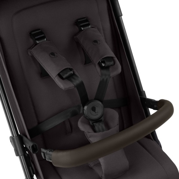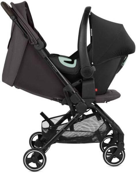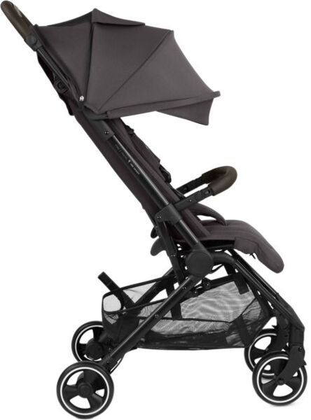 Стояночный тормоз расположен непосредственно на правом заднем колесе. Это устраняет необходимость в задней оси. Это не только экономит вес и пространство, но и повышает комфорт толкания благодаря новому пространству для ног, особенно для высоких родителей.