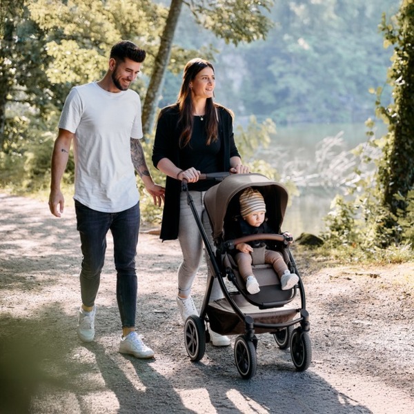 Стояночный тормоз расположен непосредственно на правом заднем колесе. Это устраняет необходимость в задней оси. Это экономит вес и пространство и, вместе с тем, повышает комфорт при толкании. С дополнительной люлькой для коляски Samba 2 ваш малыш может сопровождать вас с самого рождения.