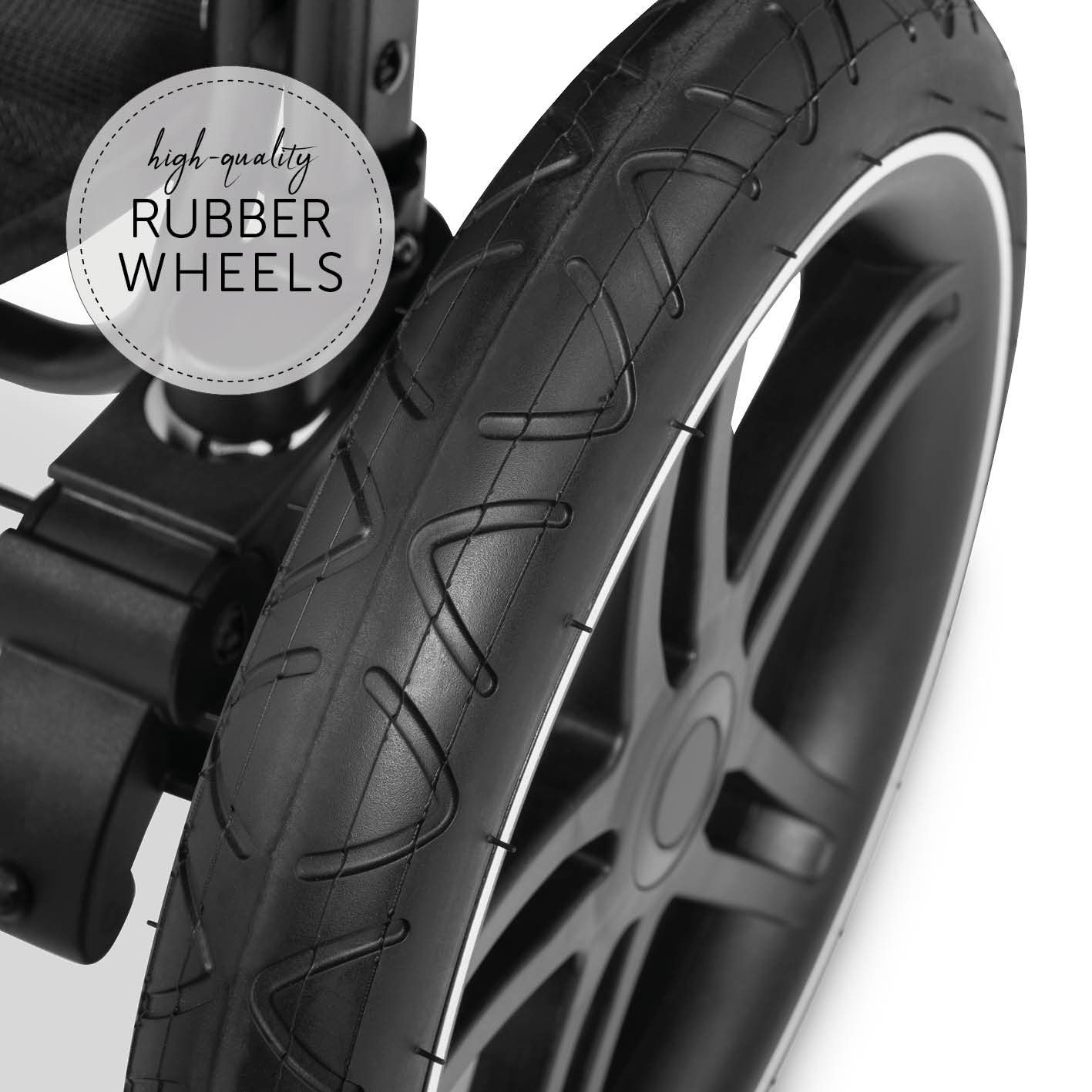 Три больших резиновых колеса, для города и леса: коляску Rapid 3R с фиксируемым поворотным передним колесом легко толкать и поворачивать практически на любой поверхности. Как раз для ваших приключений.