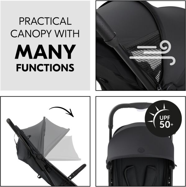 Благодаря амортизационной подвеске и колесам с плавным ходом ваш ребенок получит удовольствие от комфортной езды. Благодаря поворотным передним колесам быстрое маневрирование по торговому центру также станет детской игрой. Когда ваш малыш захочет спать, вы можете полностью откинуть спинку одной рукой. Солнцезащитный козырек с защитой от ультрафиолета 50+ обеспечивает приятную тень, а окошко "ку-ку" позволяет поддерживать зрительный контакт с малышом.
