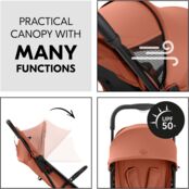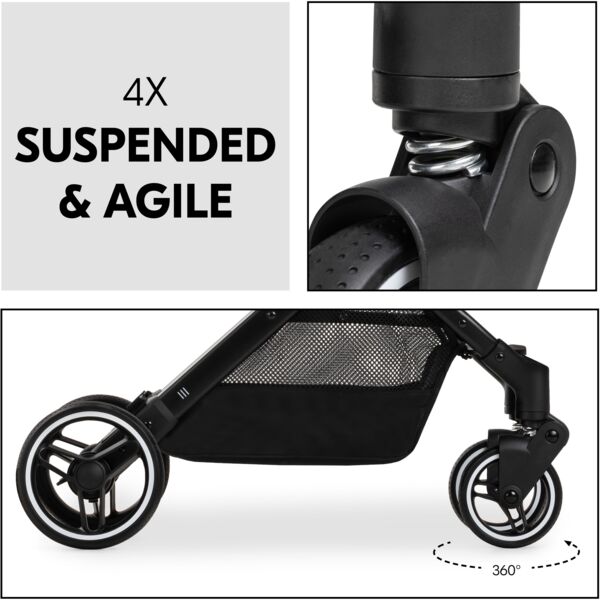 Благодаря амортизационной подвеске и колесам с плавным ходом ваш ребенок получит удовольствие от комфортной езды. Благодаря поворотным передним колесам быстрое маневрирование по торговому центру также станет детской игрой. Когда ваш малыш захочет спать, вы можете полностью откинуть спинку одной рукой. Солнцезащитный козырек с защитой от ультрафиолета 50+ обеспечивает приятную тень, а окошко "ку-ку" позволяет поддерживать зрительный контакт с малышом.