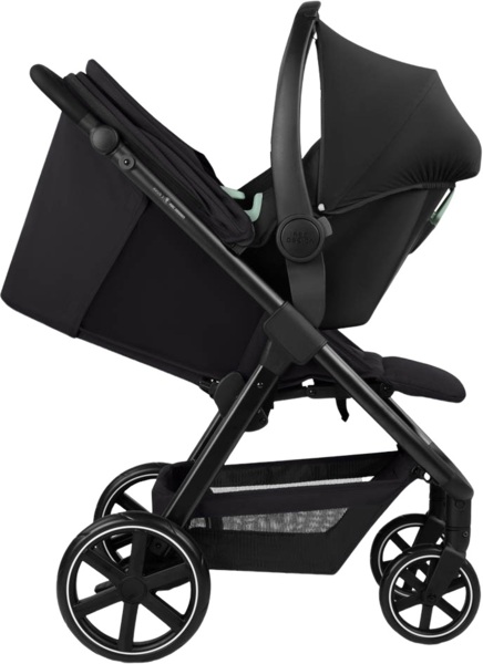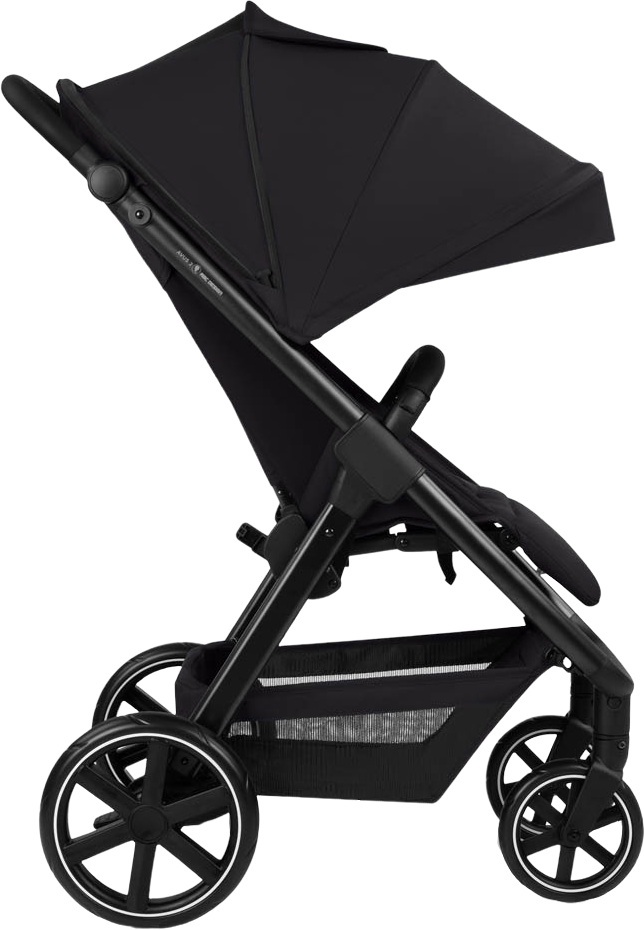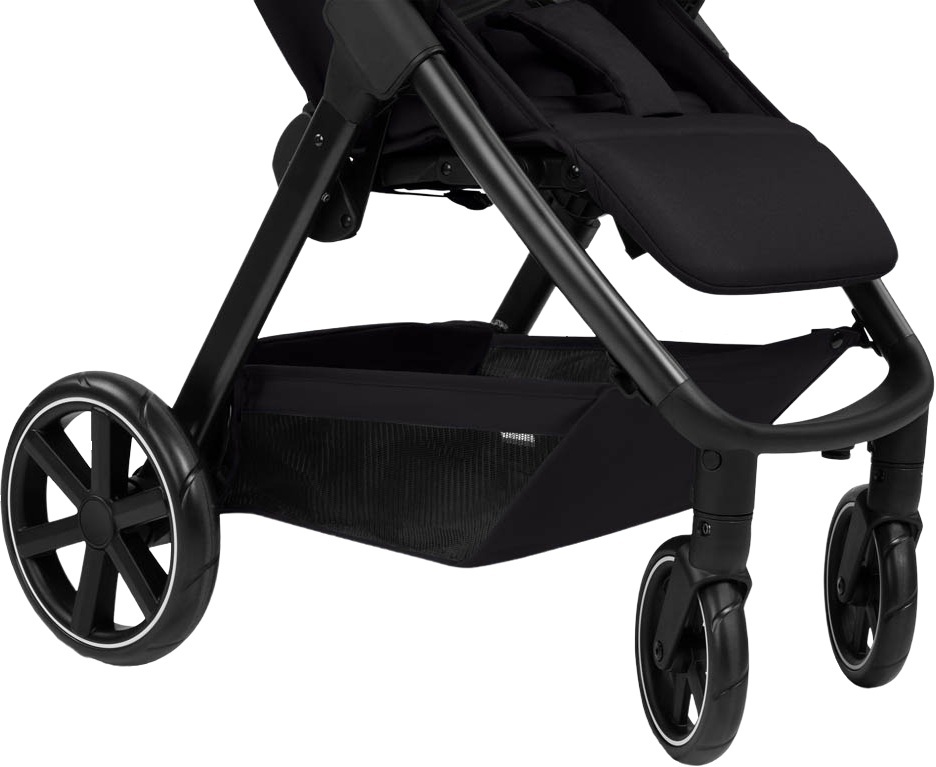 Тормоз расположен прямо у правого заднего колеса. Благодаря этому можно обойтись без задней оси. Это не только экономит пространство, но и повышает комфорт благодаря пространству для ног, особенно для высоких родителей.