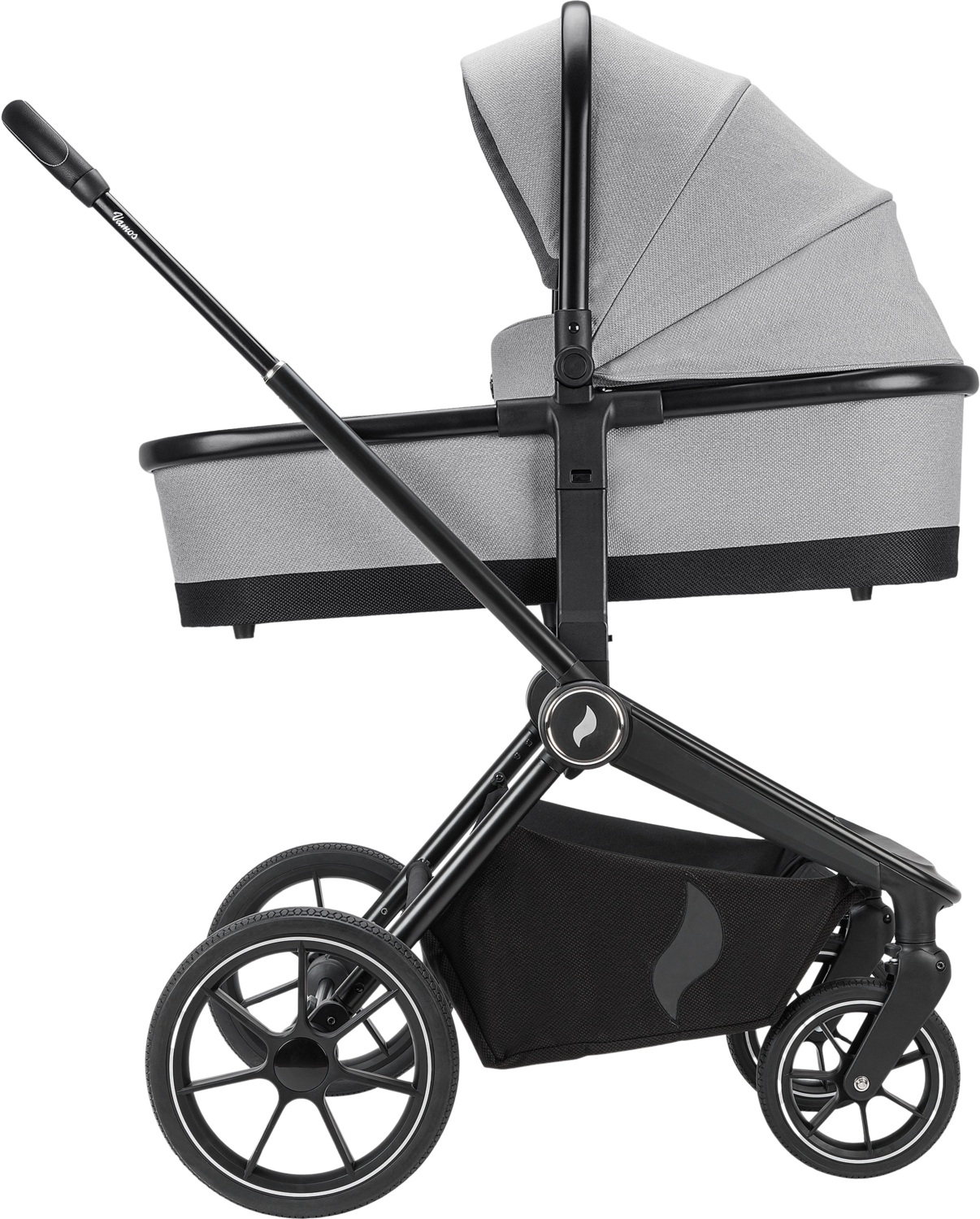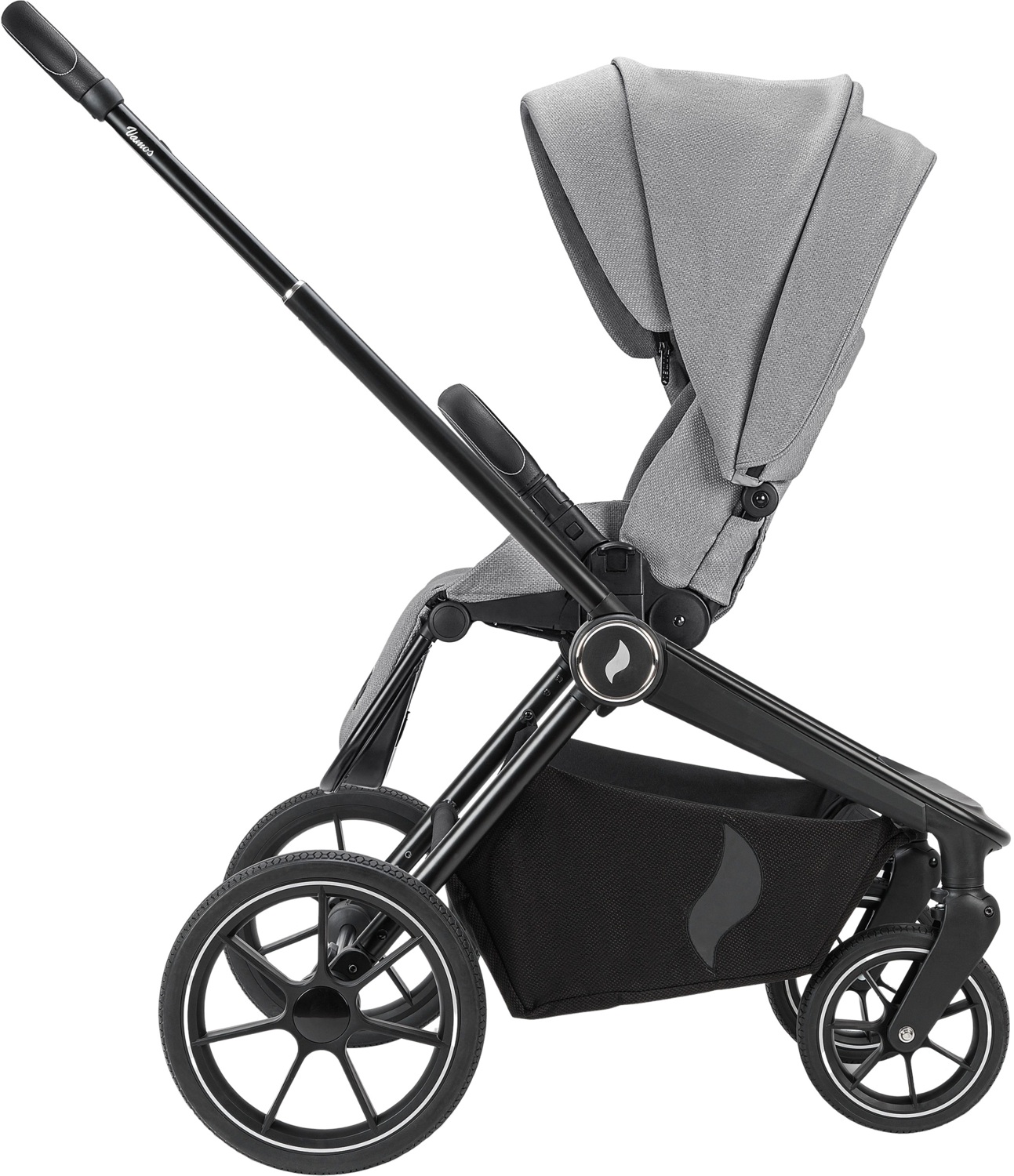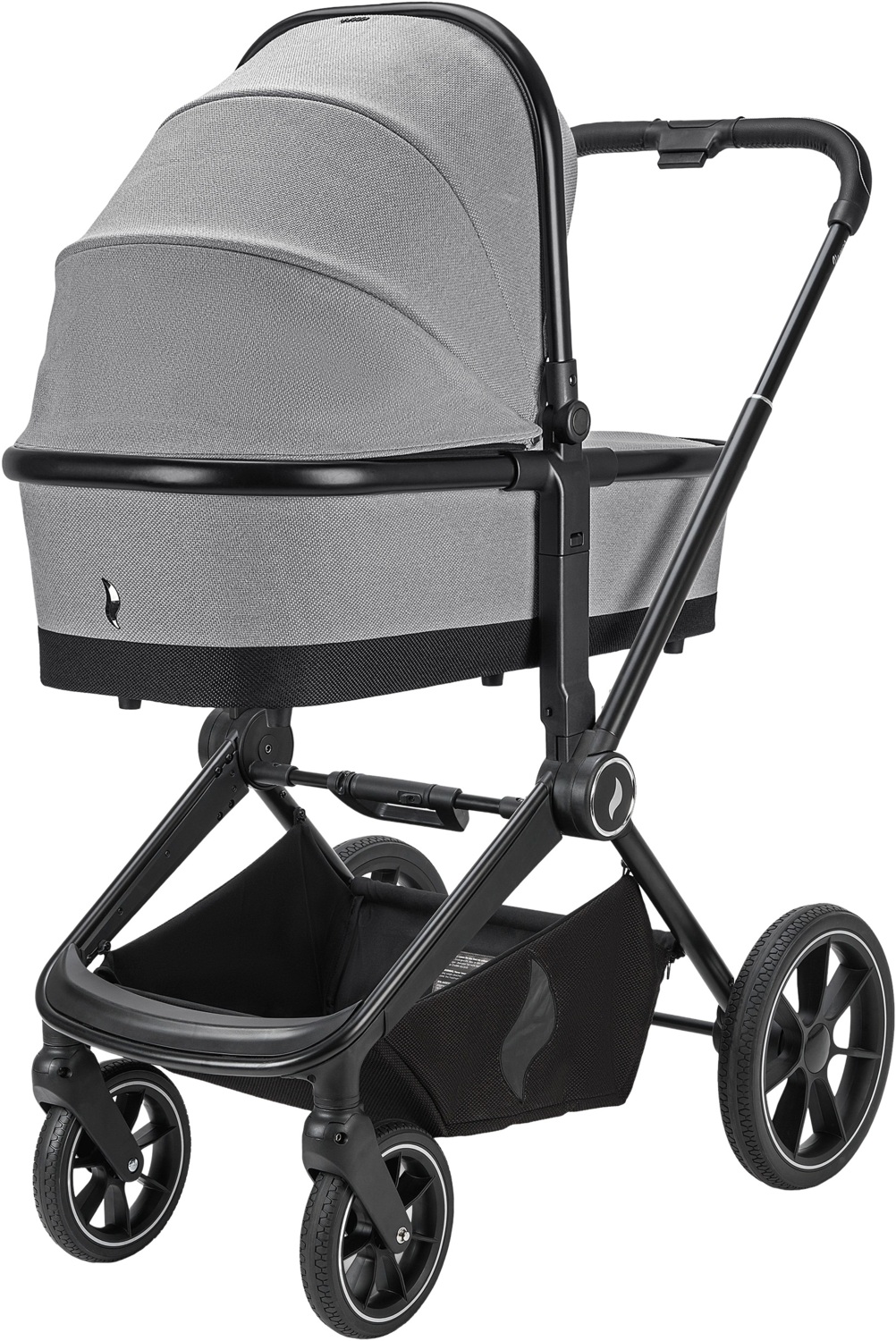 В комплект коляски входит мягкая люлька с высококачественным матрасом Kid's Alm, удобное сиденье, большие подпружиненные колеса, а также много других функций.