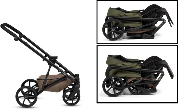Коляска имеет компактное сиденье и шасси, складывающиеся в обе стороны, для удобного хранения и транспортировки. Компактная конструкция обеспечивает удобство дома, в автомобиле или во время путешествий, не ухудшая комфорт и функциональность.