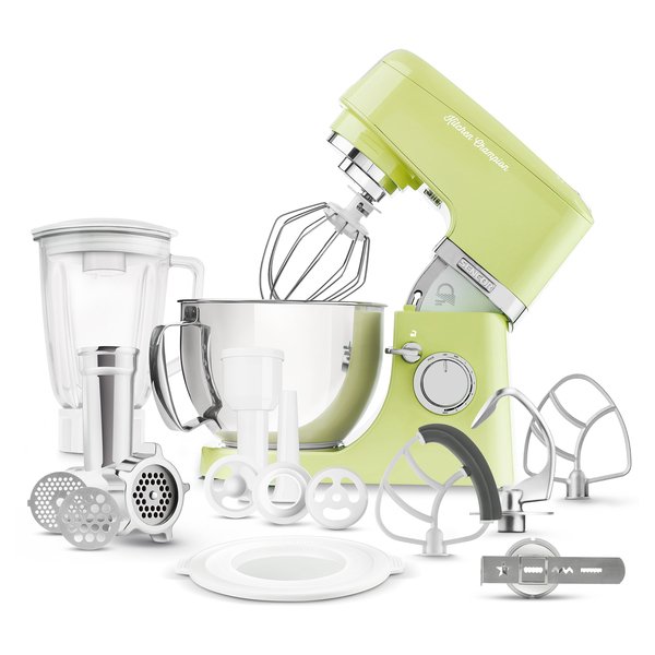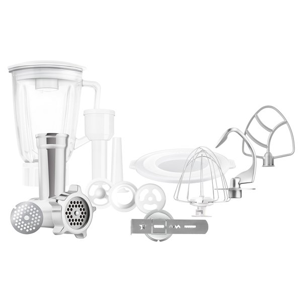 | Насадки | А-образная, Блендер, Венчик, Венчик для жидкого теста, Гибкий взбиватель, Для замеса теста, Для кеббе, Для колбасок, Для печенья, Для сосисок, Крюк для теста, Мясорубка |