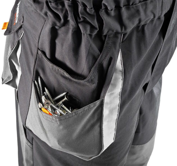 Тройные прошитые швы для повышения прочности суставов и возможность вставки наколенников. Прочные карманы позволят хранить необходимые инструменты, а благодаря цельнолитой конструкции даже большие грузы не вызовут дискомфорта при работе. Брюки отличаются карманом для смартфона - увеличенным по сравнению с предыдущими моделями для размещения моделей с большими размерами дисплея. Гарантия европейской сертификации и изготовления в соответствии со стандартом EN ISO 13688:2013, бренд NEO соответствует ожиданиям профессионалов.