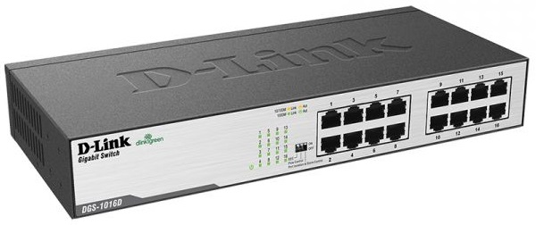 - 16 портов 10/100/1000Base-T для подключения кабелей UTP 5 категории.