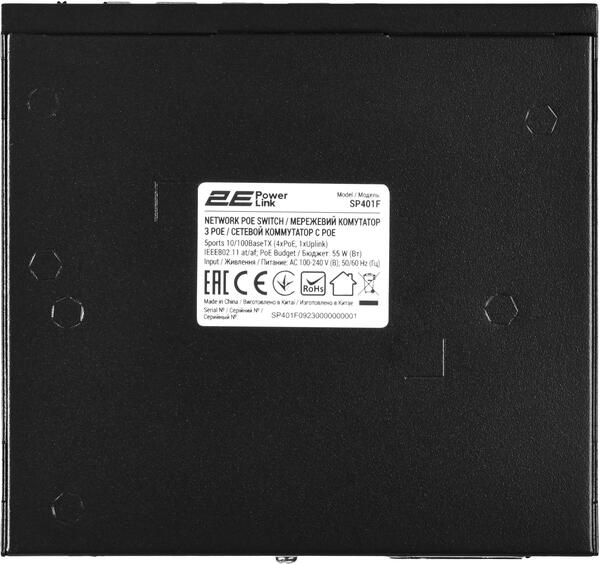 Коммутатор 2E PowerLink SP401F 4xFE PoE+, 1xFE Uplink, 55Вт (2E-SP401F-2)