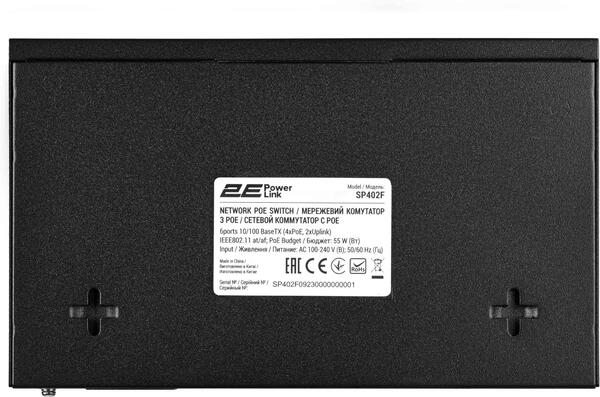 Коммутатор 2E PowerLink SP402F 4xFE PoE+, 2xFE Uplink, 55Вт (2E-SP402F-2)