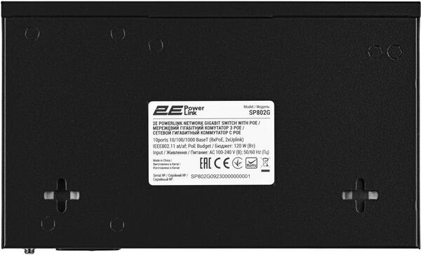 Коммутатор 2E PowerLink SP802G 8xGE PoE+, 2xGE Uplink, 120Вт (2E-SP802G-2)