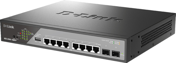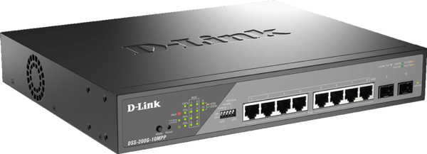 - Коммутатор D-Link DSS-200G-10MPP 8xGE PoE, 2xSFP, 242Вт, Неуправлямый (DSS-200G-10MPP)