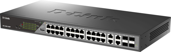 - Коммутатор D-Link DSS-200G-28MP 24xGE PoE, 4xSFP/GE, 370W, Неуправляемый (DSS-200G-28MP)