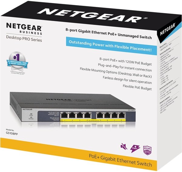 Коммутатор NETGEAR GS108PP 8xGE PoE+, неуправляемый