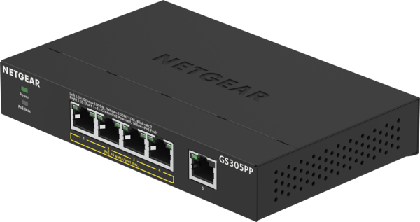 Коммутатор NETGEAR GS305PP 5xGE (4xPoE), 83Вт, Неуправляемый