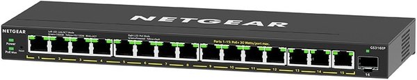 Коммутатор NETGEAR GS316EP 15x1GE PoE+ (180Вт), 1xSFP, управляемый
