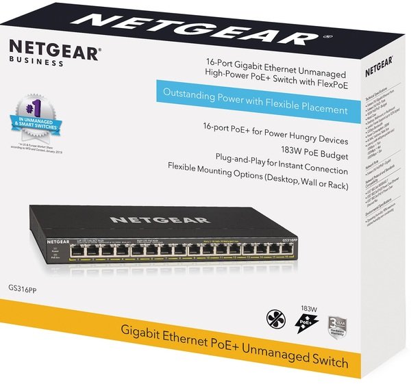 Коммутатор NETGEAR GS316PP 16xGE PoE+, неуправляемый (GS316PP-100EUS)