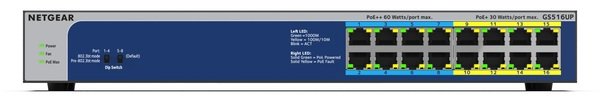 Коммутатор NETGEAR GS516UP 8xGE PoE++, 8xGE PoE+(380W), неуправляемый