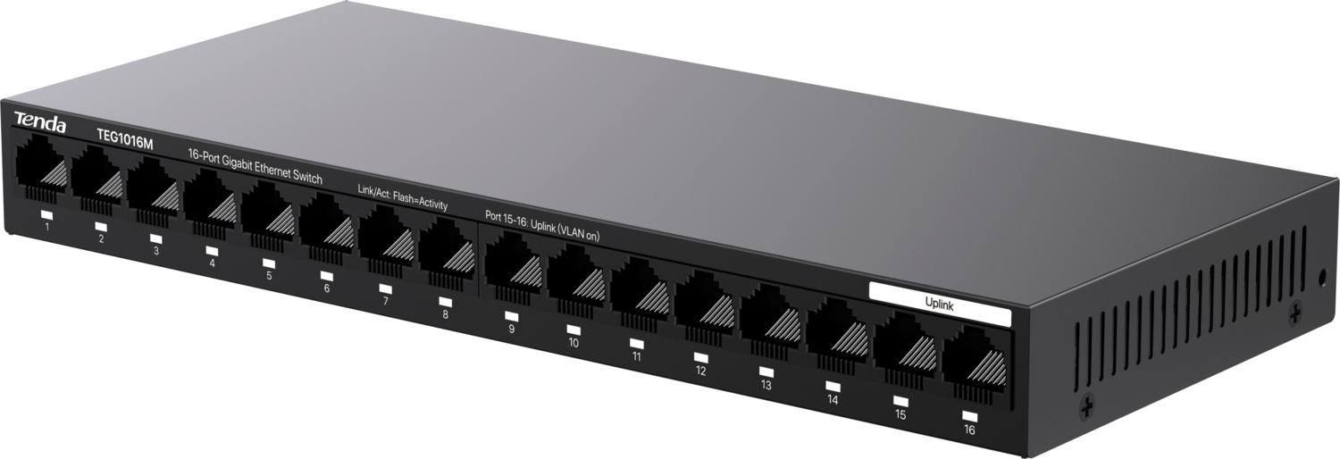 - Коммутатор TENDA TEG1016M 16xGE, Неуправляемый