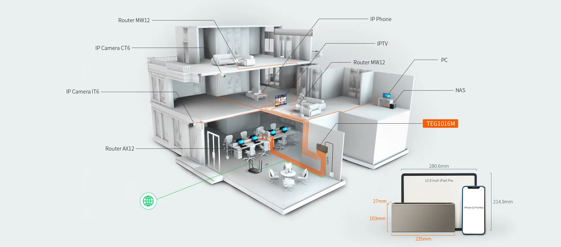 Скорость полнодуплексной передачи данных TEG1016M может достигать 2000 Мбит/с, что обеспечивает своевременную передачу больших файлов и плавную передачу видео. Коммутатор также поддерживает переключение режима изоляции одним нажатием кнопки. Он предлагает экономичное решение для видеонаблюдения и проводных сетей в таких небольших и средних сценариях, как малые и микро-предприятия, виллы и магазины.