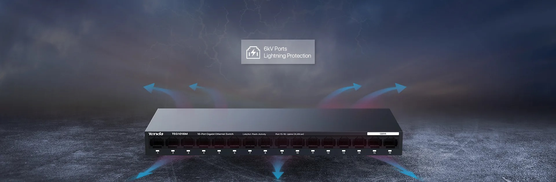 TEG1016M имеет однорядную конструкцию сетевых портов и мини-стальной корпус, что позволяет сэкономить место при установке. Он прочный и долговечный, а также обладает отличной теплоотдачей. Он обеспечивает защиту всех портов от молнии 6 кВ, что помогает продлить срок службы продукта и сделать наружное наблюдение более надежным.