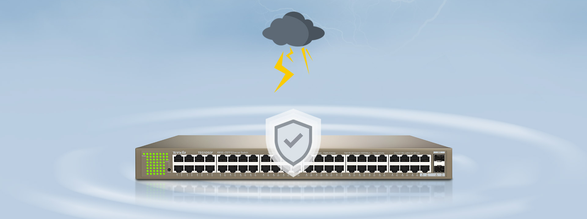 Этот коммутатор обеспечивает защиту от молнии 6 кВ как для портов Ethernet, так и для источника питания, а также поддерживает защиту от перегрева, перенапряжения и скачков тока.
