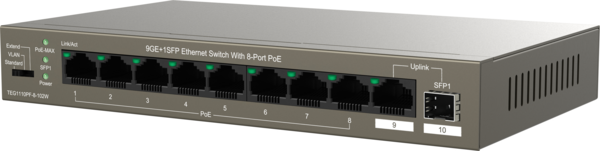 - VLAN: порты 1-8 изолированы друг от друга, но все они могут взаимодействовать с портом 9 и SFP. Этот режим помогает изолировать широковещательную рассылку DHCP и уменьшить широковещательные штормы.