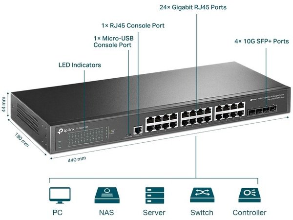 Описание Коммутатор TP-LINK TL-SG3428X 24xGE 4x10GE/SFP+ L2 JetStream 19" 1U