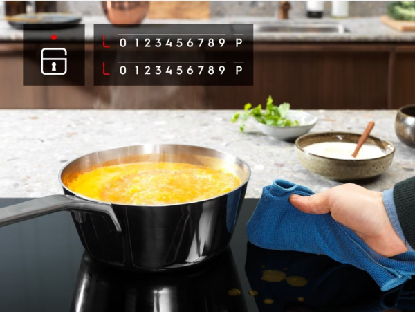 Функция «Ключ» варочной поверхности сохранит настройки приготовления даже при случайном касании панели управления — например, детьми. Это также позволит вам стереть брызги, не прерывая процесс приготовления.