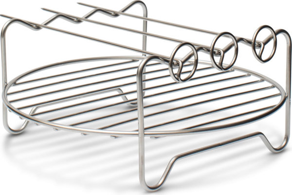 Форма, решетка и шампуры из высококачественной нержавеющей стали удобны в использовании и легко очищаются. Форма имеет антипригарное покрытие.