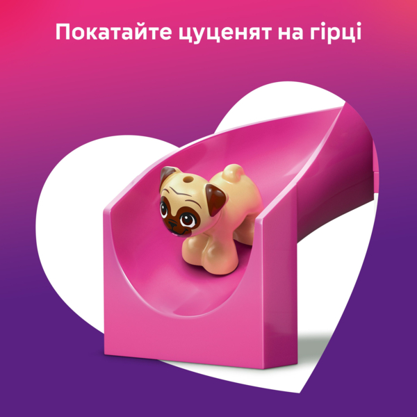 Подарите маленьким любителям животных настоящее наслаждение: сначала они соберут веселую площадку для щенков, а затем будут придумывать трогательные истории дружбы для двух мини-кукол и трех фигурок собачек.