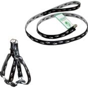 - Комплект Lucky Pet поводок+шлея капроновый Лапки черно-серый 10мм/28-33см/44-52см