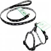 - Комплект Lucky Pet поводок+шлея капроновый Н-образный Лапки черно-серый 10мм/22-32см/24-38см