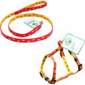 Комплект Lucky Pet поводок+шлея капроновый Н-образный Лапки красно-желтый 10мм/22-32см/24-38см