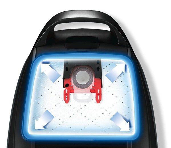 Новый пылесборник PowerProtect обеспечивает высокую силу всасывания при низкой мощности и при полном заполнении мешка