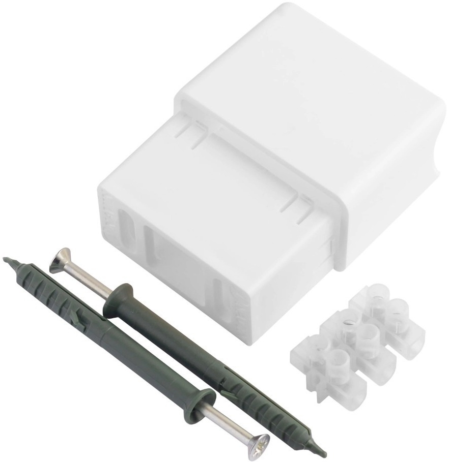 | Комплектация (возможны изменения в разных поставках) | Дюбель с шурупом - 2 шт., Клеммная колодка, Пластиковый корпус |