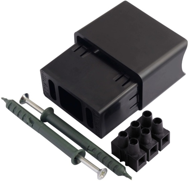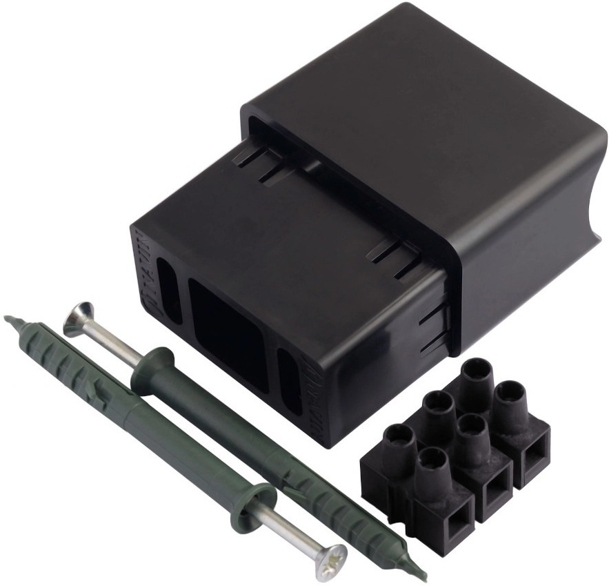 | Комплектация (возможны изменения в разных поставках) | Дюбель с шурупом - 2 шт., Клеммная колодка, Пластиковый корпус |